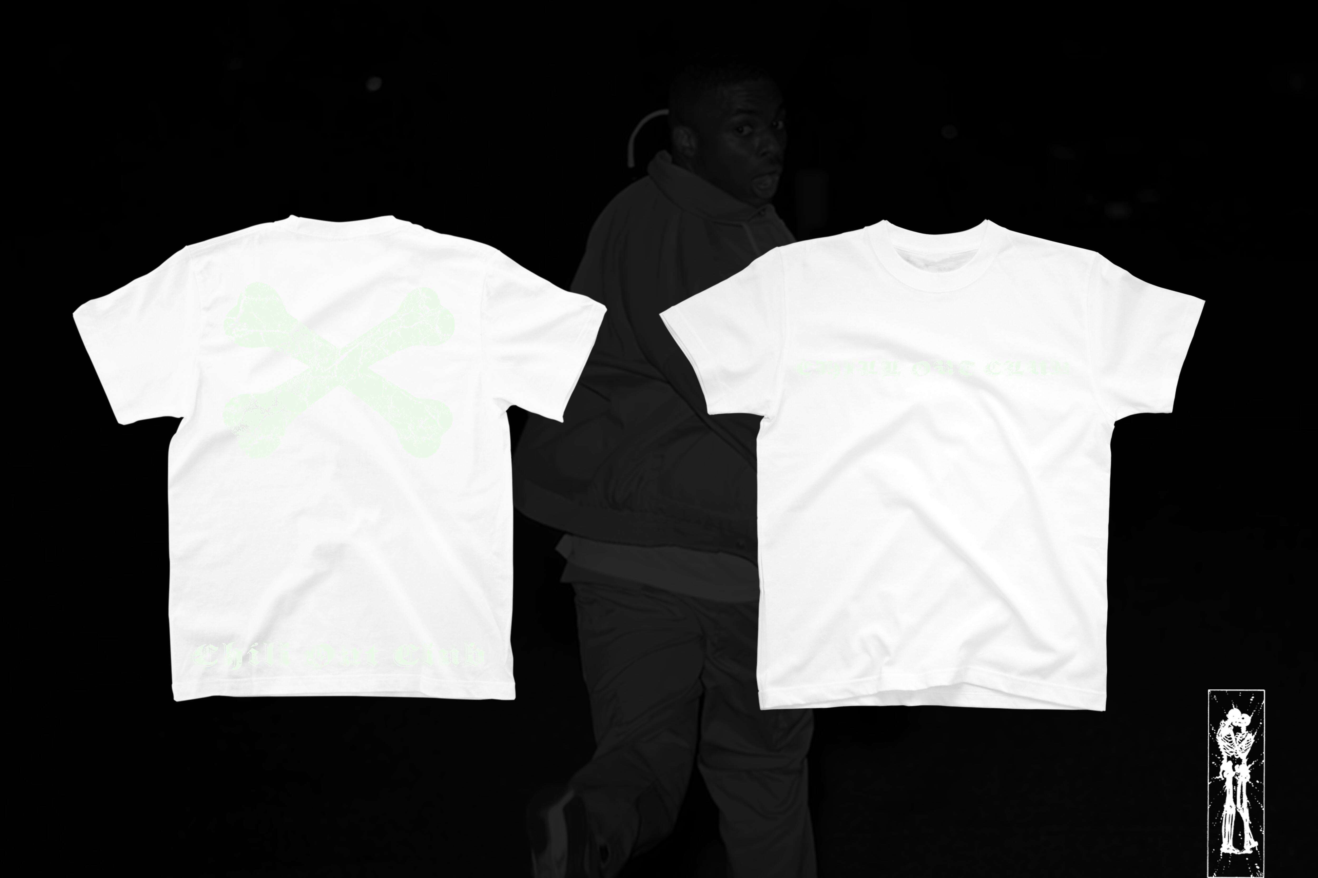 暗闇の中で浮かび上がるCrossBonesとChilloutclub。